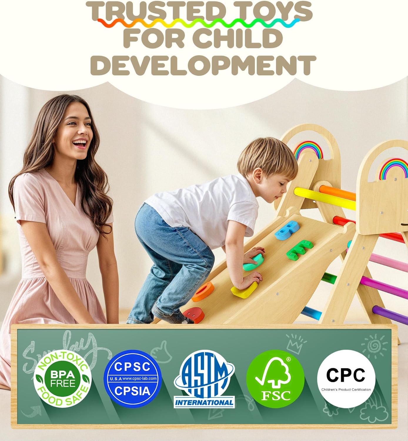 Pikler Triangle Set 9-in-1 – Montessori Wooden Climbing Toys for Toddlers 1.8–7Y, Indoor Jungle Gym for Screen-Free Play, Parent-Child Bonding & Energy Burning